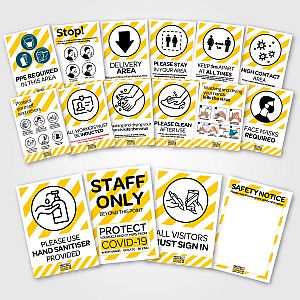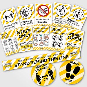 A simple package for offices. Includes safety posters, floor graphics, rollup banner