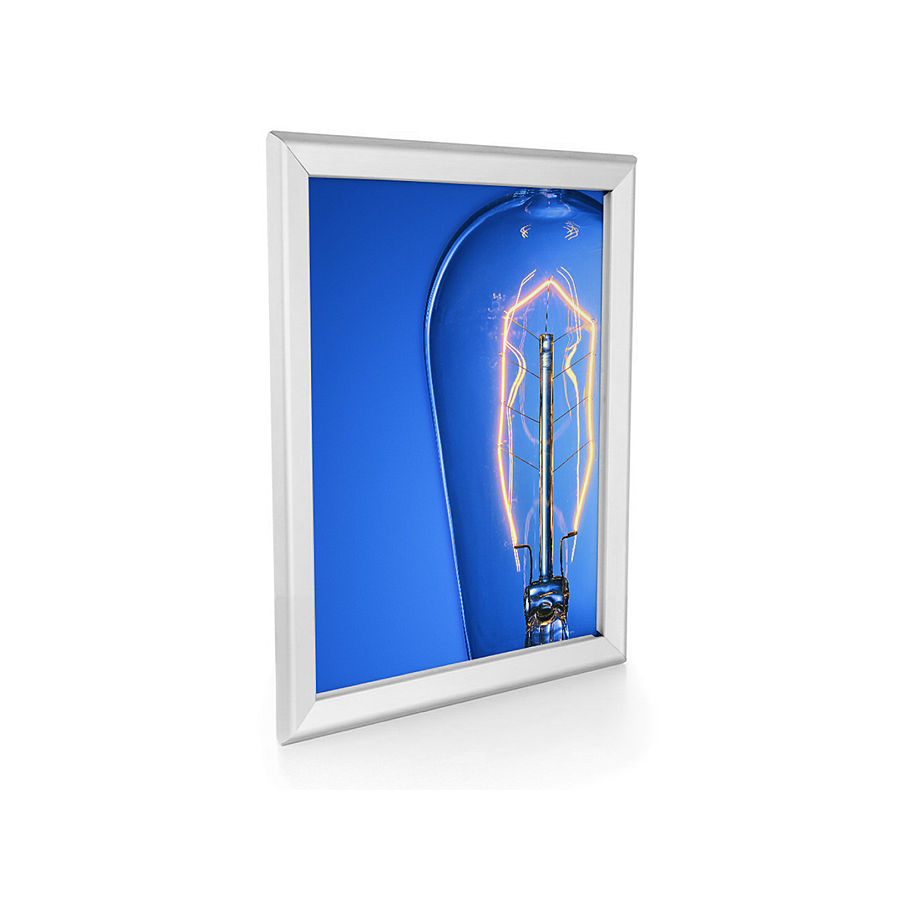 The spring-loaded aluminium frame edges snap open to easily allow the graphic to be changed out in seconds. An optional clear matte protective cover sheet is included that can be used to protect the graphic or you can use laminated prints.